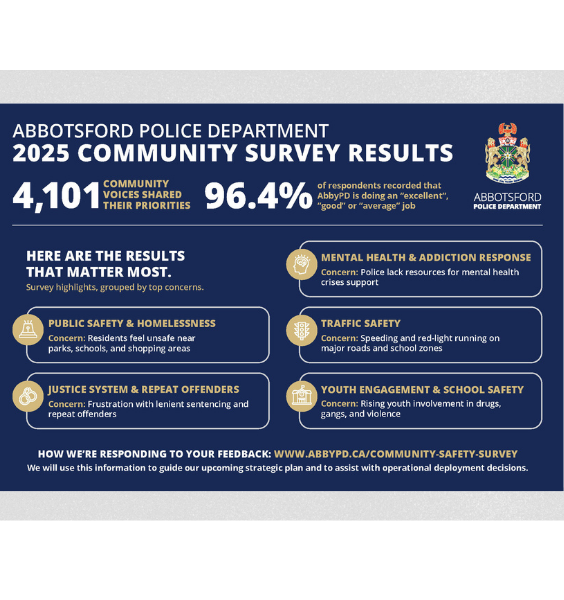 Together with our community we have disrupted gang violence, reduced property crime and helped support our marginalized community. We want to continue to work with you to help solve some of our complex social issues and support our goal to make Abbotsford the safest city in BC.