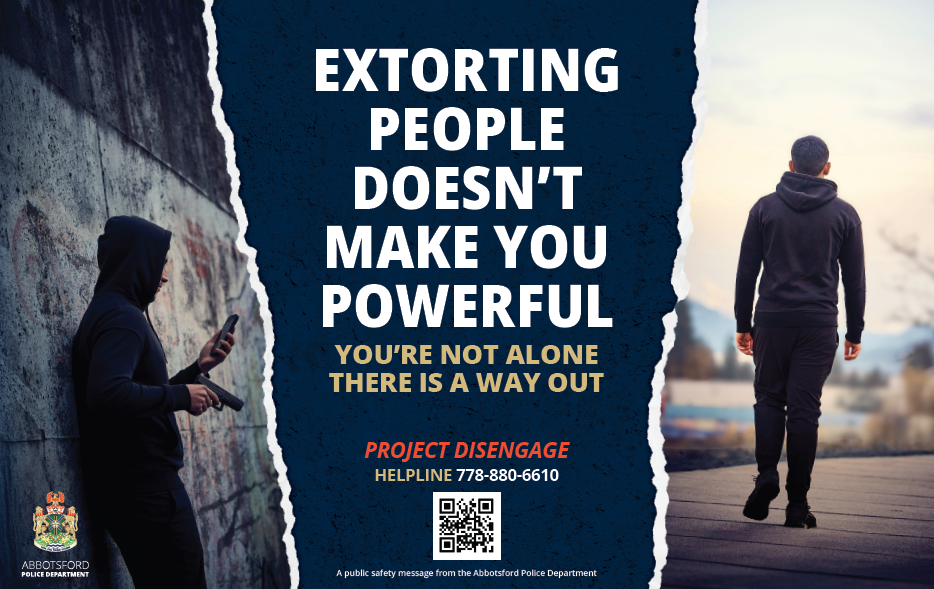 Abbotsford has faced multiple incidents of extortion-related violence in recent years, often involving threats, coercion, and sometimes escalating to shootings or property damage. To address this, AbbyPD is strengthening its efforts under Operation Community Shield by launching Project Disengage: A Lifeline for Those Involved—or Being Recruited—Into Extortion-Related Violence. This program focuses on early intervention and prevention, offering support to individuals seeking a way out of crime, with specialized resources for youth, young adults, and individuals at risk of gang involvement, radicalization to violence, and other criminal behaviors. Organized crime groups continue to exploit vulnerable individuals, but AbbyPD’s message is clear: if you are being recruited, do not engage. Help is available—before it’s too late.